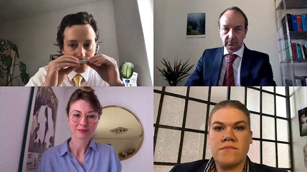 3 Minuten vor dem Onlinemeeting: Der Einstiegs-Gag ist wohl überlegt, die Flasche in der Unterhose sitzt fest und die Internetverbindung ist Premium - was kann da schon schiefgehen?